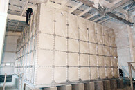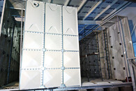Prefabricated tanks are designed for drinking water storage. Installation is carried out from separate panels made of special patented glass reinforced plastics. Panels are made under high pressure by hot molding method.